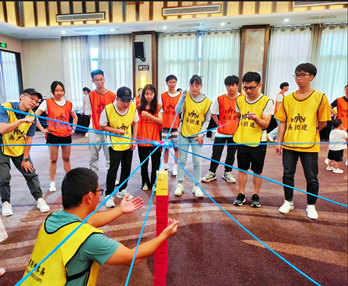 “合力建塔”也是非常考验团队合作的一项活动,需要每位队员在不用手触碰,只靠牵引绳的情况下搭起高塔,几根长长的绳索就是大家传递力量的纽带。这个项目需要大家发挥合力,快速而又沉着地完成任务,是团队协作能力的最好诠释。活动中队员们围圈而动、聚焦中央,个个屏息凝神,紧张到手心出汗,举力、拉满、移位、对接、下放……每一个动作大家都全神贯注、丝丝扣力,不敢有一丝怠慢。通过这个活动,参赛的团队收获了建塔的喜悦,更拉近了同事的距离,懂得了通力合作的意义。